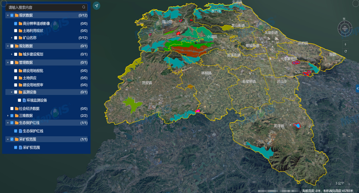 归集治理现有矿产资源基础数据以及矿产资源规划、矿业权管理、勘查/开采/生态修复相关数据,同时,逐步推进矿区三维可视化建模,整合矿山智能监测、监管数据,建设智慧地矿一张图,实现对矿产资源二三维一体化展示与统计分析。