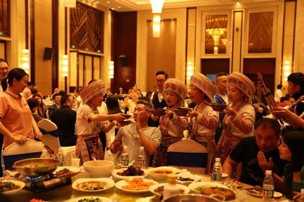 仪式上,群贤毕至,大咖云集,贵州国帅·龟仙洞酒业集团董事长赵宇飞先生、香港步长集团董事·长涛酒业集团总经理胡东辉先生、长涛酒业集团董事陈昶谕先生、贵州洞酿洞藏酒业集团OEM事业部总监张丽红女士,以及简琢控股董事长田绍收先生,美思迪贸易有限公司总经理张荷叶先生等几十位来自全国各地的宾朋齐聚国帅·龟仙洞,以传统礼仪感恩天地、祭拜酒神。