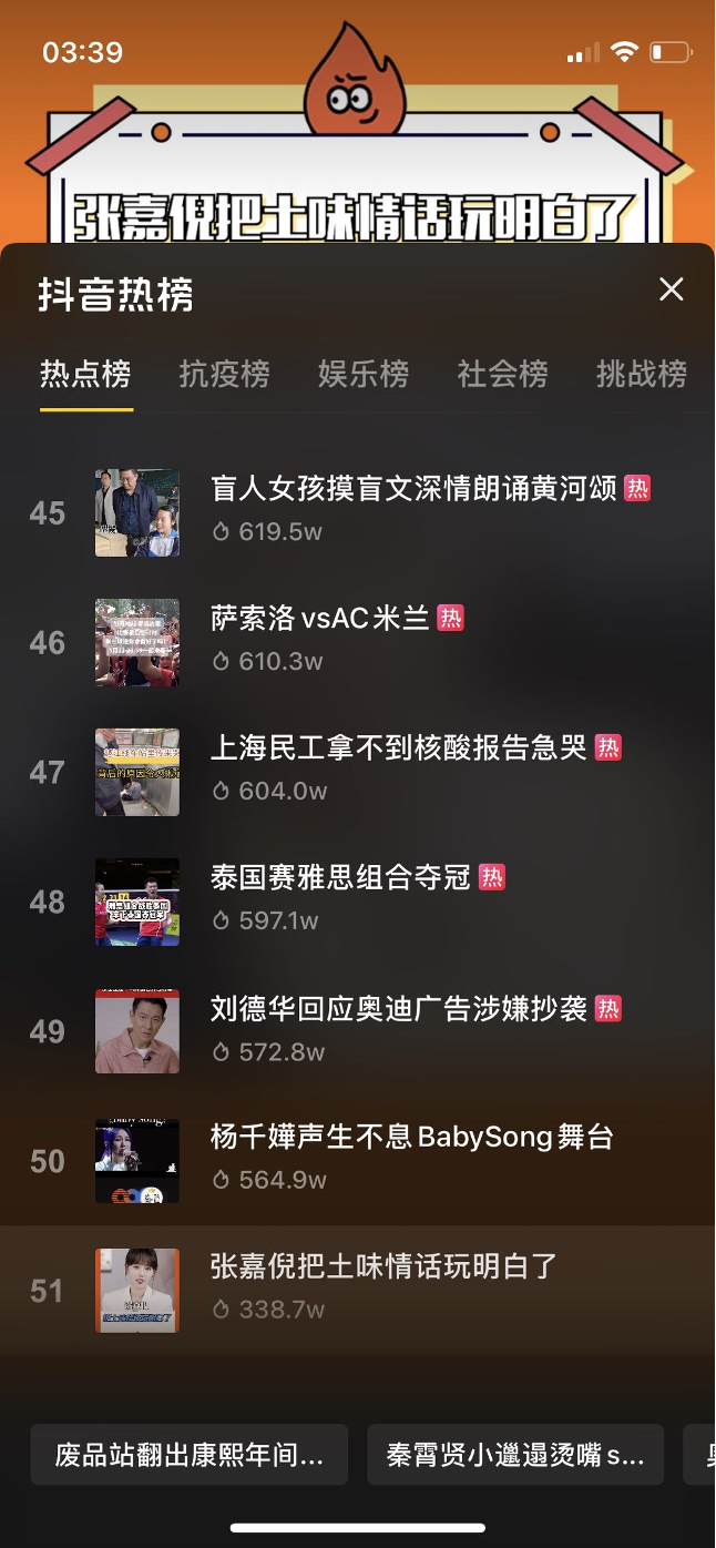 在活动bigday之前,抖音电商超级品牌日面向目标人群进行了专项运营,于抖音平台发布短视频及TopLive广告投放,提前引导大家关注品牌自播间。直播期间,结合张嘉倪直播当晚互动亮点,站内打造双话题#被张嘉倪的520wink鲨到了 、#张嘉倪把土味情话玩明白了 ,利用张嘉倪的明星光环及5.20节日热度,以强娱乐内容抢占网友视线,助力话题曝光增长,最终登上抖音热榜。