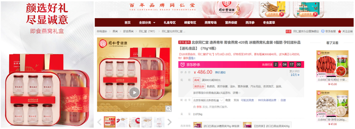 老字号品牌拥有严格的产品线生产标准和品控体系。“以燕窝为例,原料一般会带小绒毛或杂质,同仁堂对产品的纯净度要求严苛,会进行3次人工挑毛。”邹志伟表示。同仁堂的品控标准高,这无疑增加了产品的生产成本。