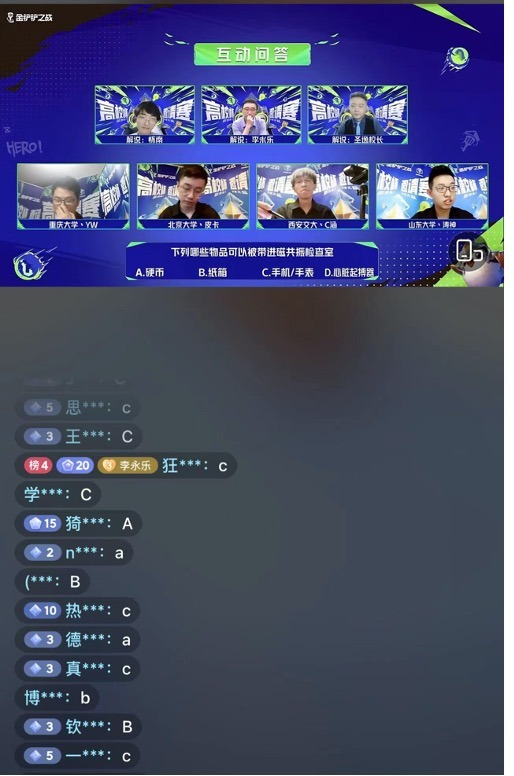 除了为水友们奉献精彩的比赛解读外,李永乐老师还把自己教书的小黑板搬到了解说台,在比赛期间为各位参赛的学霸选手们出题,面对《金铲铲之战》中的各种游戏数值问题与一些科学知识问答,在活跃选手脑细胞的同时,也带动了直播间的各位水友们纷纷弹幕留言回答,仿佛进入网课现场。