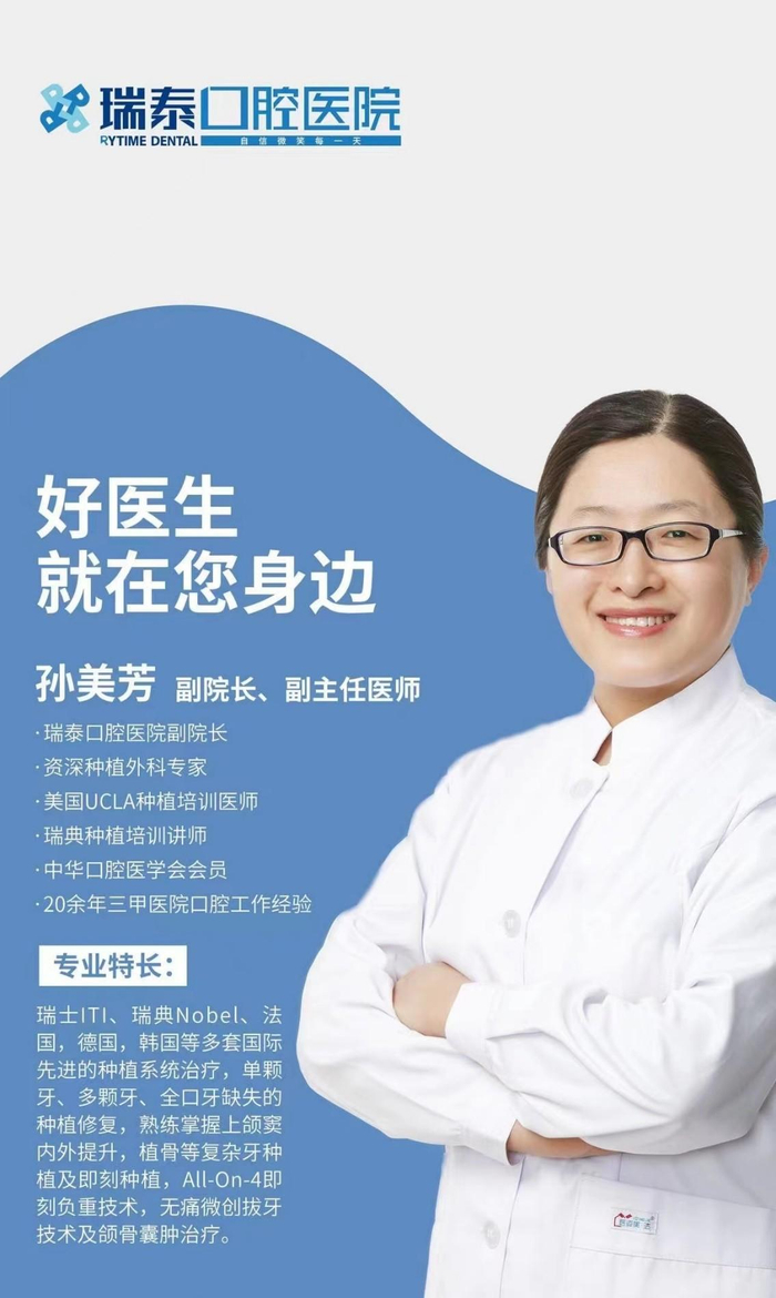 她,始终坚守在医疗一线,把工作当事业,把患者当亲人,把付出当快乐;她用高超的技术,高尚的医德,帮助众多缺失牙患者恢复“好口福”。并且得到患者的认可、信任、尊敬和爱戴,她就是北京瑞泰口腔医院副院长孙美芳。