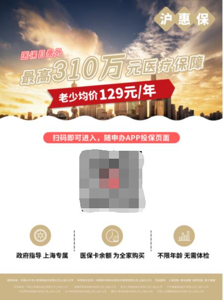 今年的“沪惠保”仍将继续为投保人,在享受上海医保待遇的基础上再进行保障,满足上海市民多元化、多层次医疗需求保障,尤其是支持重点报销各项重大疾病治疗支出,减轻老百姓因为大额医疗费用遭遇的经济负担。