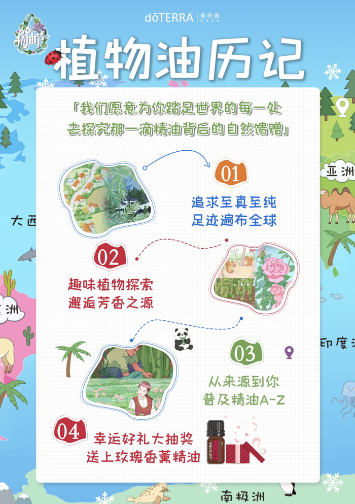 互动性的趣味形式,了解学习精油来源、美美的植物壁纸成为贴身icon、干货满满88张线上植物力卡牌,习得精油功效,让你成为精油小达人!每位参与者更有机会免费获得玫瑰香薰精油、乳香油、枫香香薰精油等多特瑞热门产品。