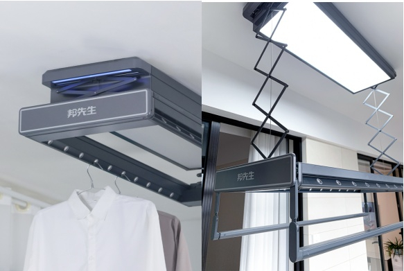 邦先生智能晾衣机装备三大缩隐结构:机身隐藏、挂孔隐藏、晾衣杆隐藏,
