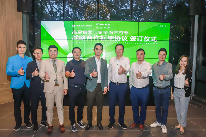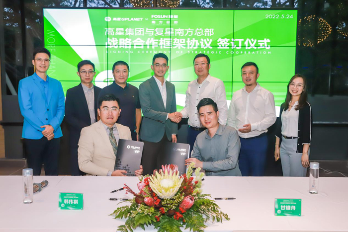 高星合伙人、高星集团业务中心总经理韩伟祺与复星南方总部投资总监甘维舟签署协议