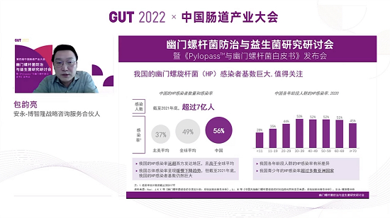 市场需求是驱动行业快速发展的核心动力,基于对消费者的深度洞察,安永博智隆战略咨询服务合伙人包韵亮在会上表示,中国幽门螺旋杆菌(HP)感染者基数巨大,超八成民众已表达对HP预防和治疗的重视。中国消费者对HP自测产品接受度较高,益生菌市场有进一步发展空间。包韵亮还结合消费者购买因素调研数据展开分析,畅谈“抗幽”益生菌现有市场情况,从菌株效果、营养成分等维度,对“抗幽”益生菌行业未来发展加以预测。