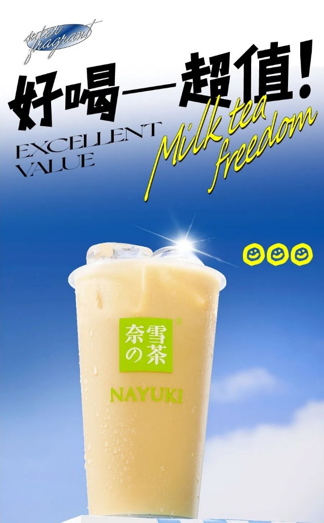 奈雪系列新品采用王牌御用茶底“金色山脉”,搭配新鲜牛奶,实现口感完美平衡,奶香茶香余味悠长。