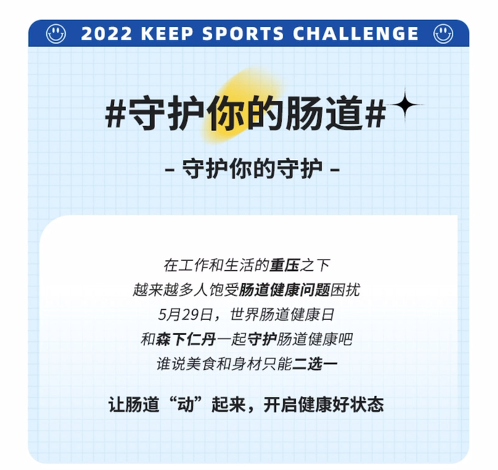 世界肠道健康日,森下仁丹携手Keep发起守护你的肠道挑战赛!