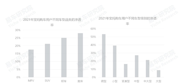 2021年,在各大品类的渗透率排行中,宝妈用户对更加优雅的跑车情有独钟,渗透率高达28.07%,其次是轿车,空间突出的SUV、MPV等相对靠后,这些都是留给她们老公的。目前多数车企仍把空间作为核心卖点,恐怕在快速崛起的宝妈车市要“碰钉子”。虽然宝妈也得带孩子,但新时代里成长起来的有中国特色的宝妈,还得逛街、购物等,她们是在引领中国的时尚与潮流,她们的座驾自然而然也要具备这样一种气场;