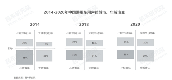 2018年之前,在中国车市只要提及小镇青年,大家都会特别兴奋,因为当时小镇青年是中国车市不折不扣的“黄金车市”。2014年小镇青年的销量占比高达40%,但2018年起中国乘用车销量开始大幅下滑,其中小镇青年车市成为重灾区,2020年的份额仅剩25%;