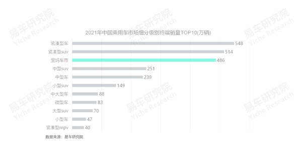 2021年,宝妈对中国车市的销量贡献,已与中国乘用车最大的两大细分车市紧凑型轿车与紧凑型SUV相差无几,后两者终端销量分别为548万辆和514万辆。该现象不仅说明宝妈车市已经成为中国重要细分车市,而且进一步论证了宝妈差不多凭一己之力,推动着高端与新能源两大细分车市的逆势上扬;