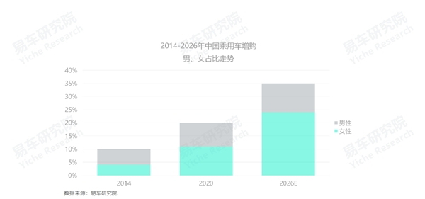2014-2020年,中国车市的增购占比大幅提升,由10%升至20%,以宝妈为主的女性用户,快速成为增购主体,由4%升至11%,助力宝妈车市。