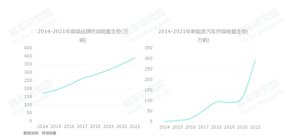 虽然大盘表现举步维艰,但高端与新能源两大细分车市迎来了黄金发展期,前者销量从200多万逼近400万辆,后者从不足50万辆逼近300万辆;