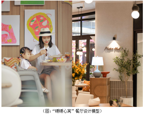 今年,必胜客持续发力,打造了面向商业区人群的餐厅设计模型“城市话廊”与“活力聚场”,以及面向社区人群的餐厅模型“暖暖心窝”与“街角拾光”,根据消费人群的不同融入了新的设计理念和设计风格,在优化店型设计的同时不断强化品牌定位,不仅为都市年轻人的用餐提供了便利,也为家庭人群创造了良好的用餐体验。