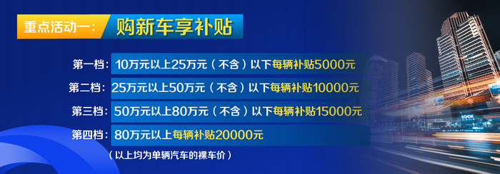 本次车展期间的汽车促消费活动,罗湖区将根据个人消费者购买单辆汽车的裸车价(发票以“不含税价”下同)分为四档经费补贴。第一档:10万元以上25万元(不含)以下每辆补贴5000元;第二档:25万元以上50万元(不含)以下每辆补贴1万元;第三档:50万元以上80万元(不含)以下每辆补贴1.5万元;第四档:80万元以上每辆补贴2万元。同时,对活动期间在参与罗湖区活动企业处购买新车,且在罗湖区内重点保险企业购买车险的个人消费者,按其商业险金额给予补贴,每位消费者最高补贴5000元。