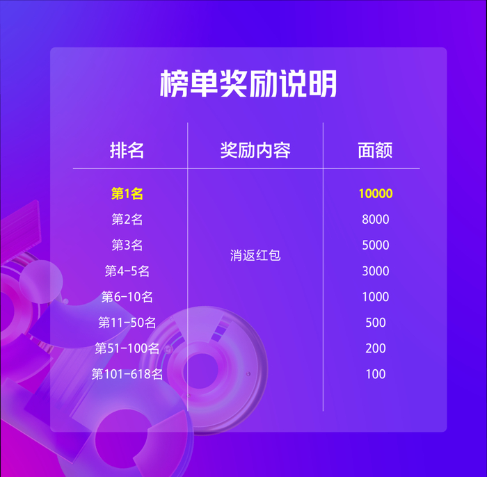 超级榜单排位, 向参与618大促的商家和达人开放。商家新人榜、商家老客榜、达人新人榜、达人老客榜四个榜单协同发力,高额奖金蓄势待发,赢最高10000元消返红包。此外,榜单前618名均能够获得相应福利,是商家达人不可错过的良心活动!