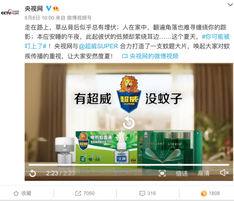 在蚊疾高发期,超威和央视网希望以更符合大众视野的形式,让蚊疾预防得到你我的重视,共同发起呼吁:重视驱蚊防护,预防蚊疾传播。