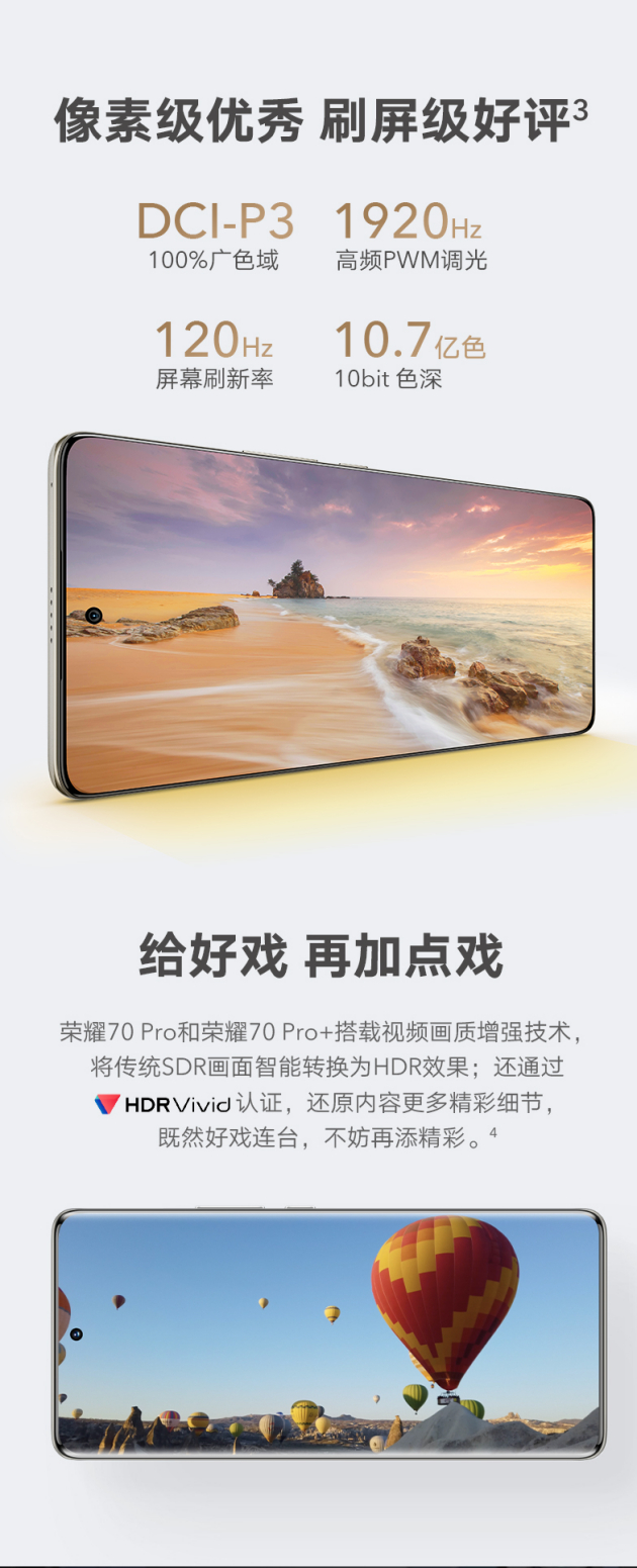 荣耀70 Pro、荣耀70 Pro+搭载全新流光四曲屏,