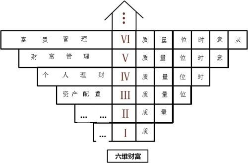世界是多维的,财富世界也是。根据笔者的理解,财富世界可以作如下维度划分(“六维财富”如下图所示)。