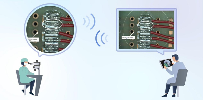 在传统的制造过程中,工人使用体式显微镜时需要反复将目光从目镜移开去检查装配说明,或在开始工作前记住这些说明,这两种方法都效率低下,可能会导致错误。有了AR功能,就可以将装配说明、指导手册、图像、十字线、量表或注释投影到体式显微镜的视野中,可以帮助工人降低工作的错误,并使他们更舒适地工作,这样工人就可以专注于自己的任务,而不必反复看向别处,提高了工作效率。如果在制造过程中出现问题,装配人员可使用MicrosoftTeams等第三方协作软件,与场外经理或工程师分享目镜中的实时视图,从而获得相应指导,及时解决问题。