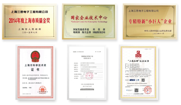 自成立伊始,三思已经荣获“国家企业技术中心”、“国家级专精特新“小巨人”企业”、“上海品牌”认证、“上海市质量金奖”、“上海市级工业设计中心”、“LED应用工程十佳品牌”等诸多荣誉,可说是硕果累累。