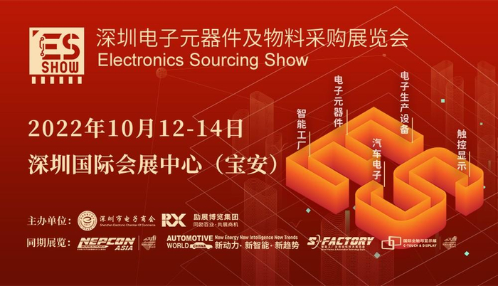 ES SHOW电子物料采购展将于2022年10月12-14日 在深圳国际会展中心(宝安新馆)隆重开幕,期待您的参与。
