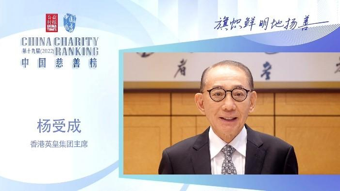 2022年5月30日,集团主席杨受成博士和副主席杨政龙先生在北京举行的“第十九届(2022)中国慈善榜”一同获颁“慈善传承楷模”奖项。这是二人首度以父子形式登上“中国慈善榜”获慈善表彰,奖项旨在表扬集团主席杨博士充分发挥企业家精神,在其言传身教下,杨政龙先生也积极承担企业社会责任,携手英皇集团推动中国内地及香港的公益慈善事业,创造共享价值,通过行动践行慈善文化的传承。
