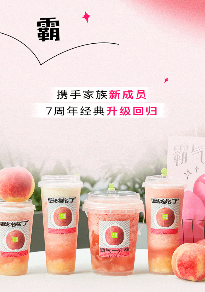 据悉,本次第7年经典回归,奈雪共推出「霸气水蜜桃」、「霸气芝士水蜜桃」及「霸气一升桃」3款产品,上市当周就成为奈雪全国门店的销量王。