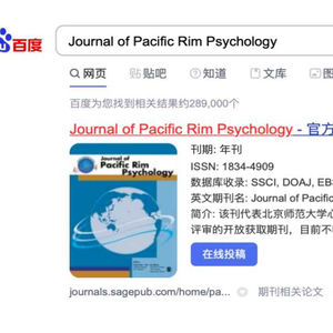 期刊Journal of Pacific Rim Psychology(SSCI索引,北京师范大学合办)官方认证卡片