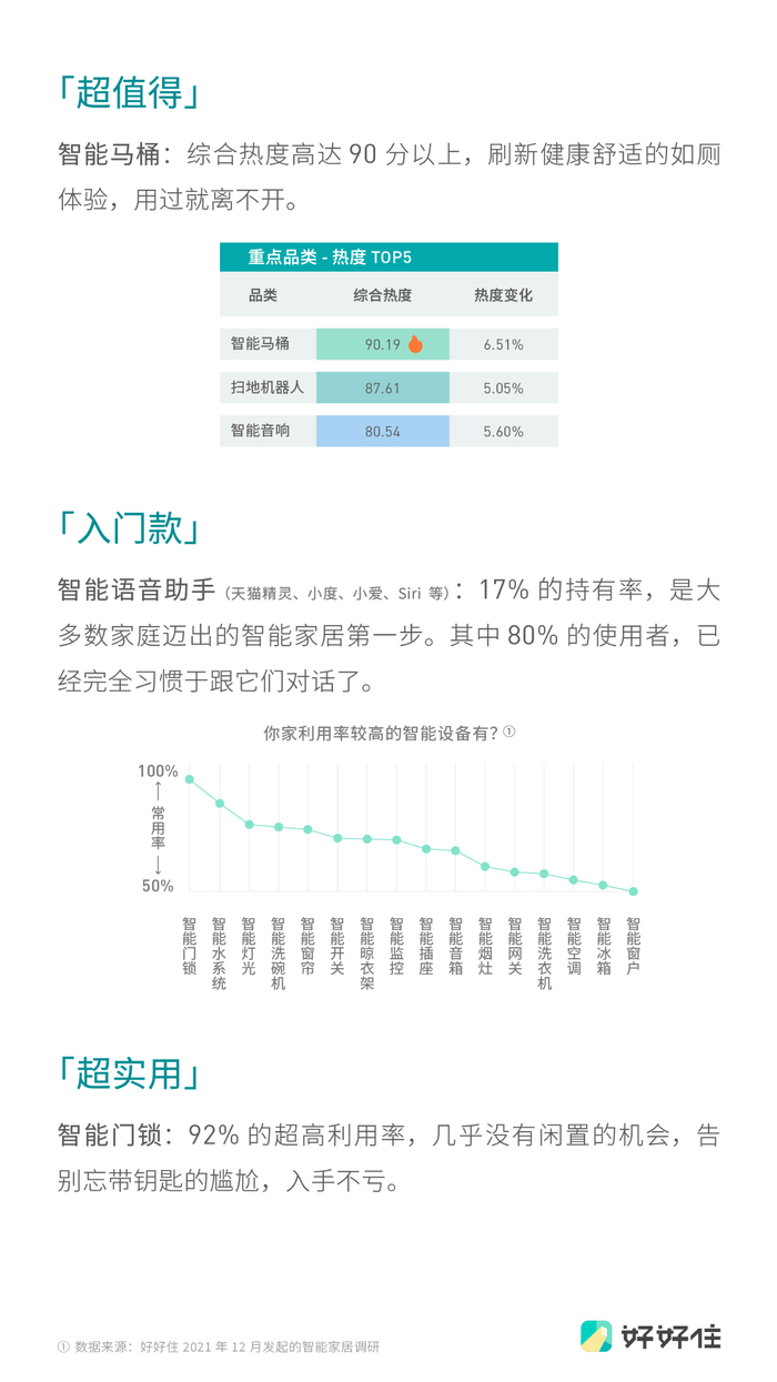 同样为了让居家生活更“省力”,智能家电也成为了消费者们关注的一大重点品类,在好好住发布的趋势中,“智慧居住”也成为一大趋势。