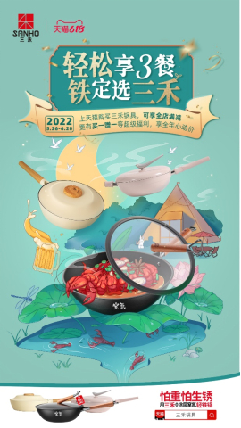 618年中大促即将开启,2022年5月26日至6月20日,上天猫或京东,搜索“三禾锅具旗舰店”,购买三禾锅具,可享全店满减。三禾窒氮轻铁锅自去年上市以来,半年售出1.5万口,甚至登顶电商类目排行榜。今年618购买三禾窒氮轻铁锅,送高品质不粘煎盘等超级福利,价格几乎是原价的6折,享全年心动价。