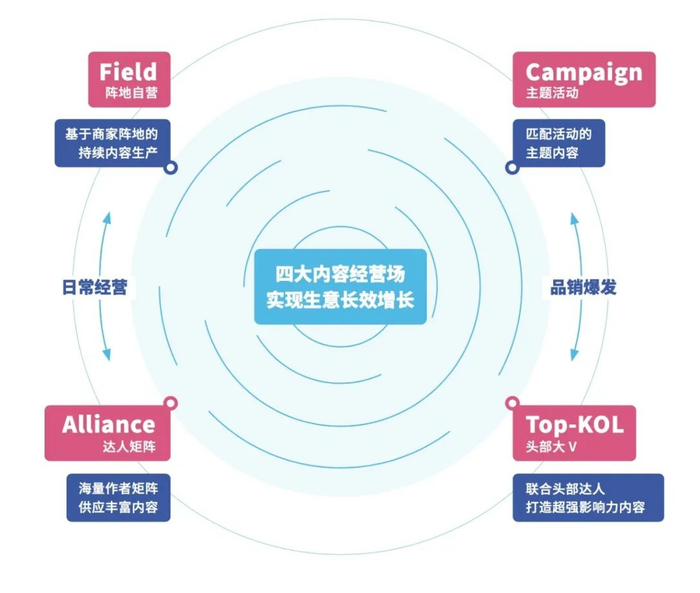 F(Field),阵地自营,就是基于商家阵地的持续内容生产;