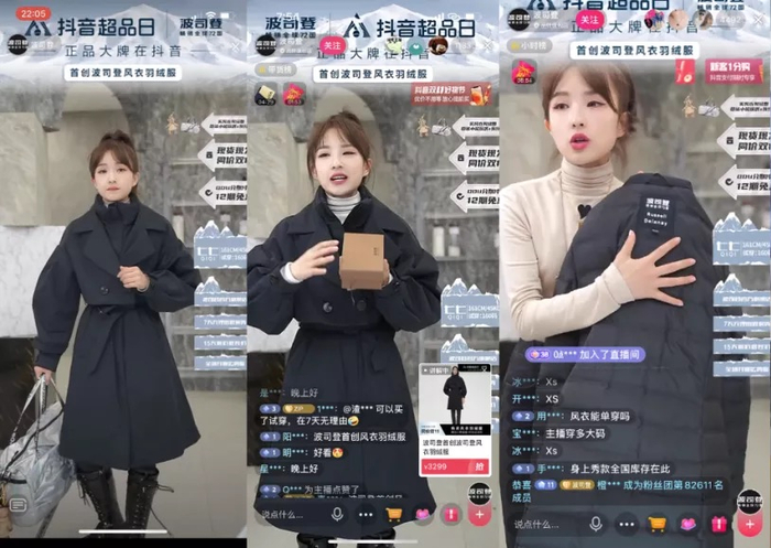 选定主款很重要。根据前期蓄水的人群,波司登选择了一款价值3299元的“泡泡袖款风衣羽绒服”。因为这一款,很适合偏好时尚、有设计感的蓄水人群。然后,波司登迅速针对这款主销款,优化口播脚本,尤其是产品面料、工艺特点等,强化“3D立体剪裁更符合亚洲人身形”。10月27日发布会一结束,直播间立刻开始销售。
