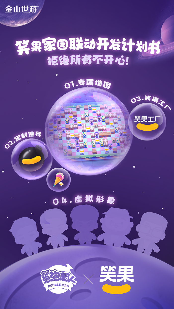 6月1日,经典“炸弹人”玩法休闲竞技手游《全民泡泡超人》正式与大小朋友们见面。笑果文化作为“生态共创者”,将联手金山世游,依托《全民泡泡超人》,通过对彼此业务边界的拓展,共同打造虚拟喜剧空间,探索跨界合作的新方向。