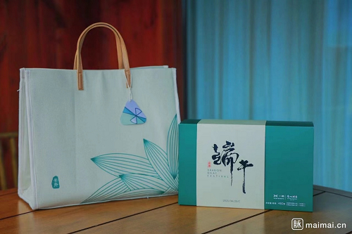 整体采用了帆布包造型,精致又不失实用性,可以装笔记本、手机、工牌、充电器等等;设计语言以“简约典雅”为准,简单的“端午安康”传递出节日的亲切问候,颜色上以深绿色系为主,也是非常契合端午。