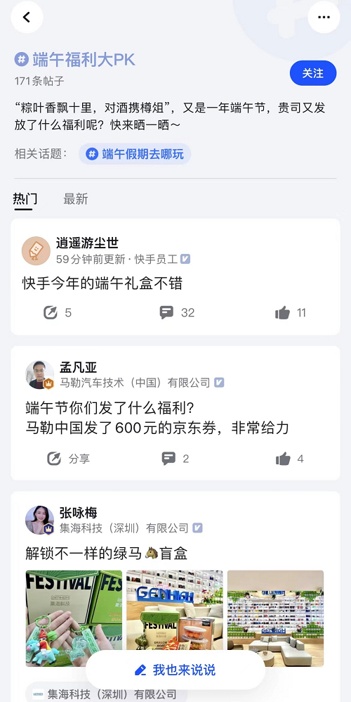 当然以上这些大厂的端午福利还仅仅是一小部分,很多企业也已经开始陆续发放端午礼盒。那么贵司又发放了什么福利呢?快来加入#端午福利大PK#,一起来晒一晒吧~