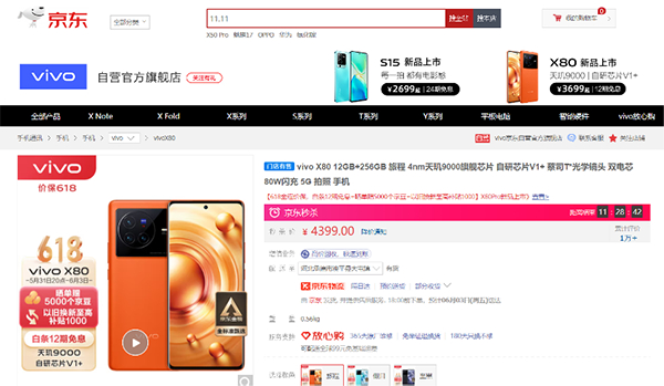 如果你喜爱大屏手感,vivo X80或许是不错的选择,采用6.78英寸大屏,搭载自研芯片V1、天玑9000旗舰芯片,还有蔡司T*光学镜头的加持,影像和性能都不俗,12+256G版京东618到手价4399元,可享12期免息福利,加99元还赠299元真无线耳机,目前位于京东4000-4999元手机榜第2名。