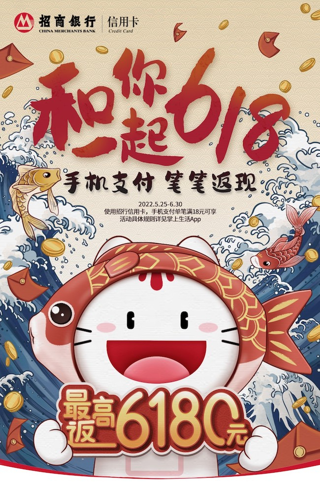 今年的618年中大促,是释放消费潜力、促进消费恢复、助力经济复苏的重要节点。国家相关会议指出,消费是经济增长的稳定器和压舱石,是畅通产业循环、市场循环的重要基础,要发挥消费对经济循环的牵引带动作用。为积极响应国家号召,提振消费信心,招商银行信用卡推出“和你一起618”活动,通过线上手机支付笔笔返现,线下61.8元购100元商圈消费券,与广大消费者、商家同频共振,助力美好生活。