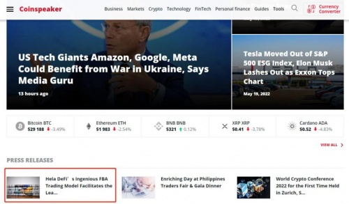 Coinspeaker:Hela DeFi独创FBA新型交易方式或将推进DeFi 3.0发展
