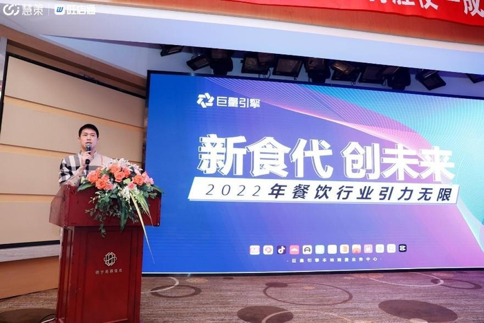 由此可见,直播电商的重要性。如今,越来越多的兴趣类平台开始涉足电商行业,将电商交易场景丰富化、趣味化,抖音是最好的代表。如何布局兴趣电商就成为抢占先机的关键。活动现场,巨量引擎本地消费业务中心西部区域市场经理——唐鑫,就这一话题展开了以《新食代,创未来》为主题的分享。唐鑫以其专业的知识和丰富的经验向大家娓娓道来,从餐饮行业势能增长入手,分析并展示了在抖音平台如何通过做内容抢占流量以及提升人群转化效率的具体教学。其中,多个餐饮品牌通过线上推广,拓展线下生意,生意经营成功升级,令人印象深刻。