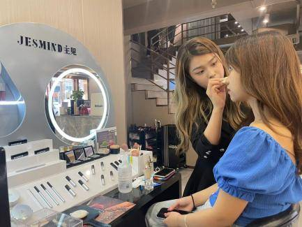 后疫情时代,实体店铺流量不稳,但地处东莞万江的ASn一站式变美中心却热闹非凡,美妆品牌主见与ASn店铺强强联合,在美发店进驻美妆专柜,配备专业化妆师,为客户免费化妆。