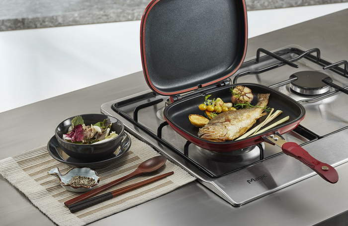 双面锅两面翻转,两面同时加热大大提升了煎烤类的烹饪效率