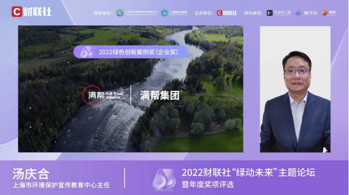 近日,满帮集团以科技驱动碳减排、赋能绿色供应链的创新模式和卓越成果,在2022财联社“绿动未来”主题论坛暨年度奖项评选活动中荣获绿色创新案例奖。
