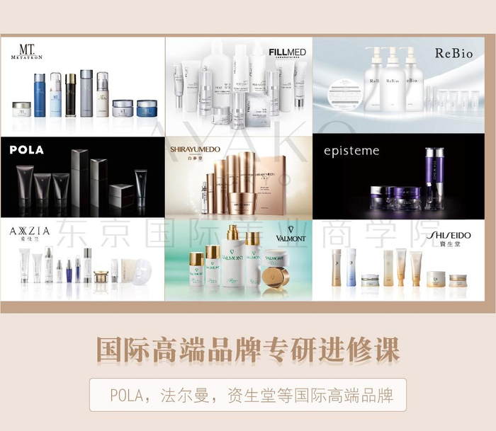 ①海菲秀、菲洛嘉、资生堂、晓姿、POLA、法尔曼、香奈儿、海蓝之谜、莱伯妮、瑞妍、悦碧施、兰蔻、Powertree、乐敦嫒碧知等等国际尖端大牌研修课;
