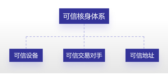 可信体系建设带来的直接作用是简化用户操作和提高交易成功率,实现智能核身,主要围绕可信设备、可信交易对手、可信地址来构建。