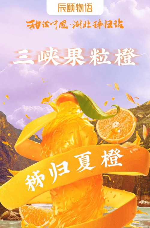 2022年6月8日,辰颐物语“甜满中国”湖北秭归站即将甜蜜来袭,“三峡果粒橙”秭归夏橙给你满满维C和夏日独有的清爽口感。