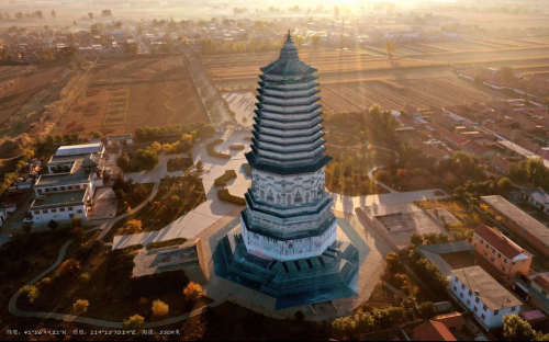 与此同时,本次《中国千年古塔摄影巡回展》中摄影作品拍摄的时间跨度长达30余年,得益于摄影技术的不断发展,千年古塔的阐释方式也越发多样,在保证真实性的基础上,艺术性更加鲜明。大画幅专业相机的加持,使巨幅图像更适宜展出并放大了千年古塔的诸多细节;而无人机航拍技术不仅能大幅提升画质,更能直观展现塔顶的建筑样式、雕刻工艺,提升了观赏性的同时,也为后期古建筑修复提供了参考价值。