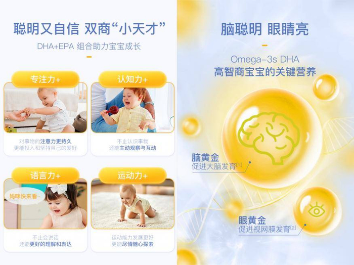目前,在婴幼儿时期为宝宝补充充足的DHA,促进宝宝大脑、视觉的发育,已成为中国新生代父母的共识。作为父母的“赢养”指导者,ChildLife十分重视DHA产品的研发,及时洞察家长和不同孩子的营养补充需求,不断完善产品,推出了覆盖孕妈DHA、鱼油DHA到藻油DHA的完善DHA产品线。