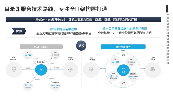 宁盾践行身份目录即服务理念(DaaS),发布MeConnect人+端一体化方案,为企业提供云上云下一致性身份体验。